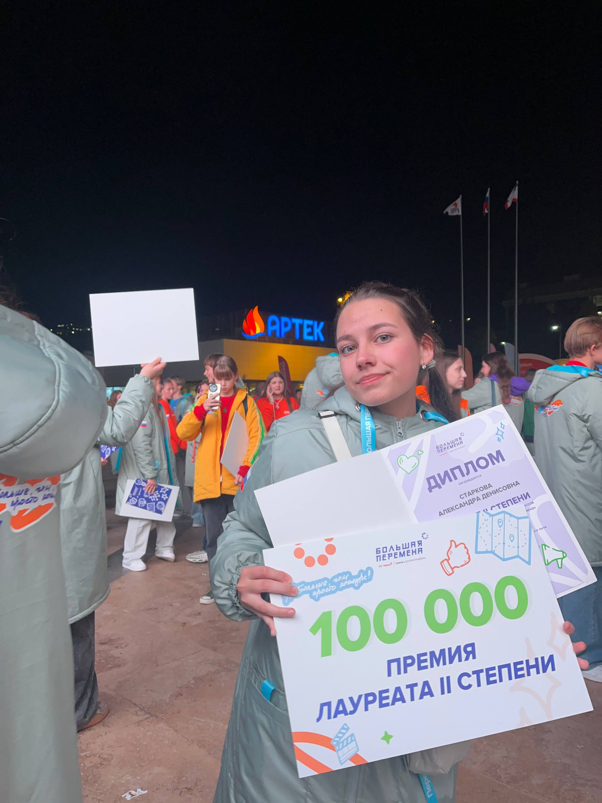 В августе этого года прошёл второй этап конкурса в Перми. Там участники решали новые кейсы, демонстрируя навыки командной работы и проектной деятельности. Пройдя все испытания, Александра узнала, что прошла в финал конкурса и получила путёвку в Международный детский центр «Артек» на 12 смену в лагерь «Полевой».