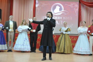 Главным распорядителем праздника был «сам» Александр Сергеевич Пушкин в исполнении артиста Артура Акульчика. Участники бала дружно приветствовали участников клубного любительского объединения «Классика» культурно-досугового центра им. А. С. Пушкина села Большого Болдина, они в образах пушкинских героев представили театрализованную танцевальную программу.