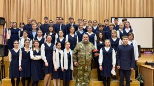 Николай Васильевич представил учащимся историю службы в легендарной экспедиционно-штурмовой бригаде «Сибирь» и рассказал, что сегодня он является сотрудником Единого центра патриотического воспитания «Авангард» Нижегородской области и членом правления Регионального общественного фонда «Памяти митрополита Нижегородского и Арзамасского Николая». В своём выступлении Николай Васильевич провёл глубокую параллель между подвигами героев Великой Отечественной войны и мужеством современных защитников Отечества. Он рассказал о непреходящих ценностях, которые объединяют все поколения: долг, честь и искренняя любовь к Родине.
