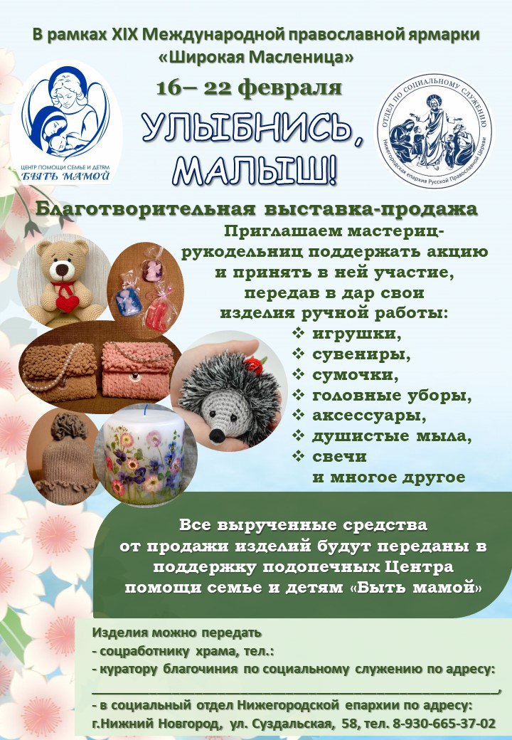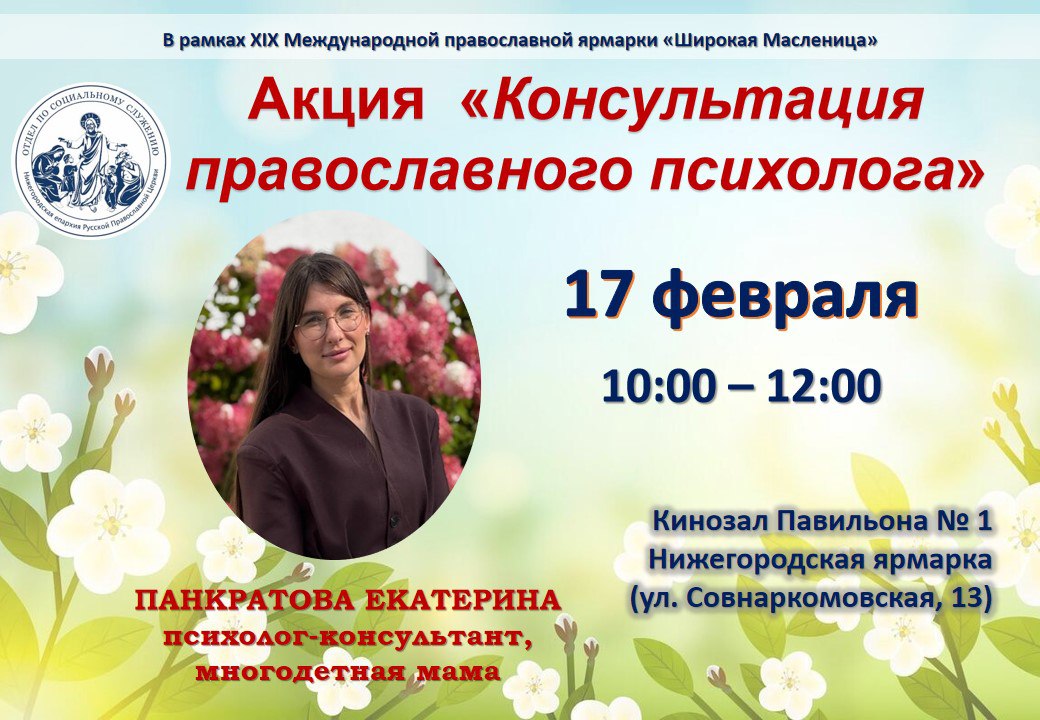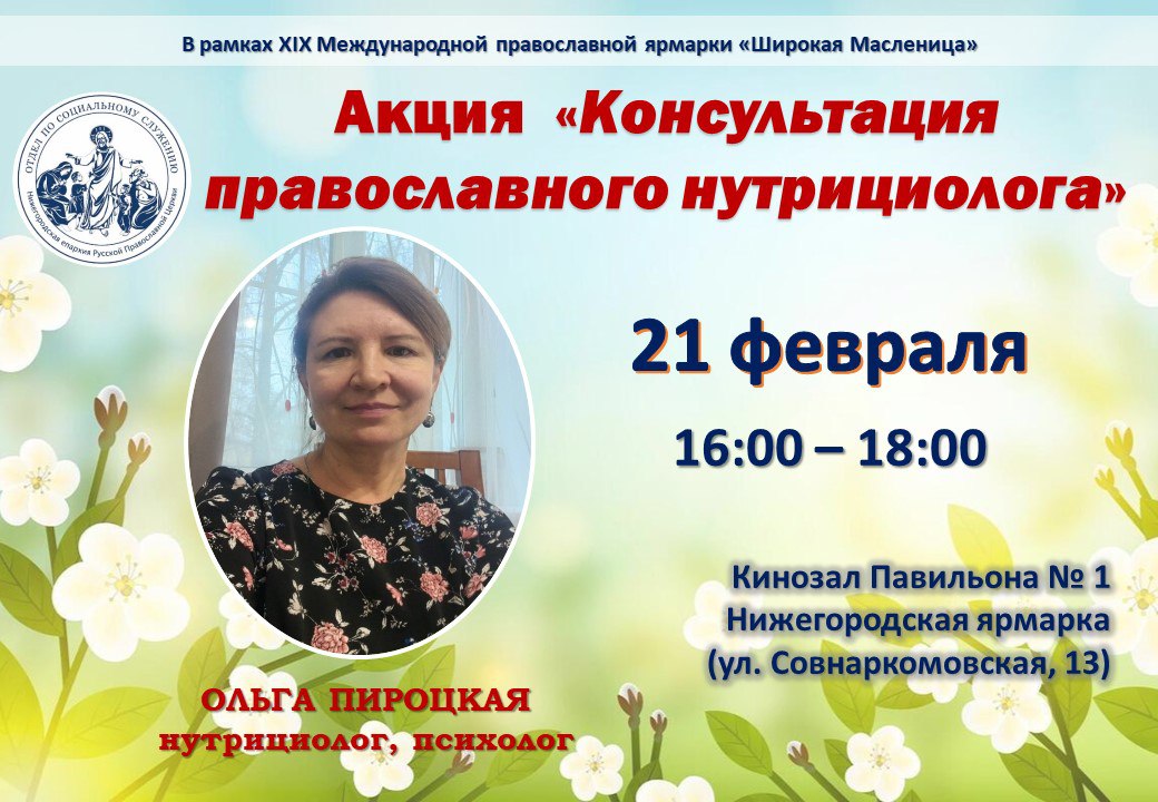 19 февраля в конференц-зале «Смысловой клуб» первого павильона Нижегородской ярмарки в рамках XIX международной православной ярмарки «Широкая Масленица» отдел Нижегородской епархии по взаимодействию с медицинскими и социальными учреждениями проведет благотворительную акцию «Во здравие и спасение!».