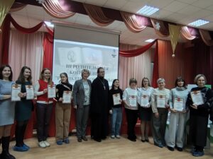 12 февраля сотрудники Канавинского благочиния приняли участие в родительской конференции «Реликвия моей семьи», организованной на базе общеобразовательной школы № 121, в рамках сетевого взаимодействия образовательных организаций микрорайона «Гордеевский» по духовно – нравственному воспитанию детей и молодежи. Среди участников конференции были педагоги, ученики школы № 121 с родителями, воспитанники воскресной школы «Одигитрия», действующей при приходе церквей в честь Смоленской и Владимирской икон Божией Матери Канавинского благочиния, с родителями, представители МБДОУ «Детский сад № 51» и МДОУ «Детский сад № 476».
