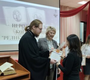 В завершение мероприятия директор школы Елена Александровна Молодцова и отец Димитрий подвели итоги конференции, наградив грамотами Канавинского благочиния участников, рассказавших об истории семейных реликвий.