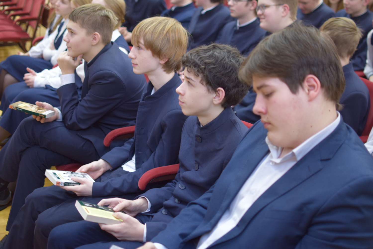 13 февраля в актовом зале Православной гимназии Александра Невского состоялась встреча восьмиклассников с сотрудниками отдела увековечения памяти АНО «ЕЦ «Авангард» Баевым Сергеем Владимировичем, Корняковым Андреем Сергеевичем, Сикорской Дарьей Владимировной. Специалисты центра не только прочитали учащимся лекцию «Неизвестный солдат» и показали фильм о поисковом движении, но провели для ребят историко-краеведческий квиз «Нижегородцы – Защитники Отечества». Отвечая на вопросы, восьмиклассники получали в подарок книги.