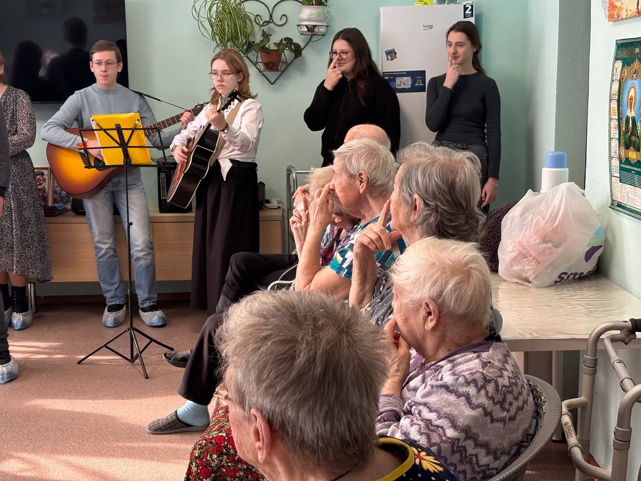 21 февраля ученики 8 «А» и 8 «Б» классов православной гимназии Александра Невского под руководством Грудановой Ольги Игоревны и Соловьевой Екатерины Сергеевны навестили подопечных подшефного Дома престарелых. Эта поездка стала особенной, ведь она объединила сразу два ярких повода — Масленицу и День защитника Отечества. Ребята подготовили для пожилых людей насыщенную интерактивную программу. Встреча началась с весёлых игр и фольклорных забав. Особенным моментом стали песни под гитару: восьмиклассники заранее подготовили специальные песенники с крупным шрифтом и раздали их подопечным. Гимназисты бережно помогали бабушкам и дедушкам следить за текстом, и вскоре весь зал в унисон пел любимые мелодии военных лет и народные песни. Такое живое общение — главная цель визита. Ребята старались уделить внимание каждому: поддерживали под руку, беседовали и просто были рядом. В завершение мероприятия гимназисты вручили подопечным сладкие подарки, чтобы праздничное чаепитие стало ещё приятнее. Такие выезды восьмиклассниками проводятся регулярно с октября месяца в рамках социального проекта «Тепло поколений». Благодарим учеников 8-х классов, их родителей и классных руководителей за активное участие в подготовке праздника!
