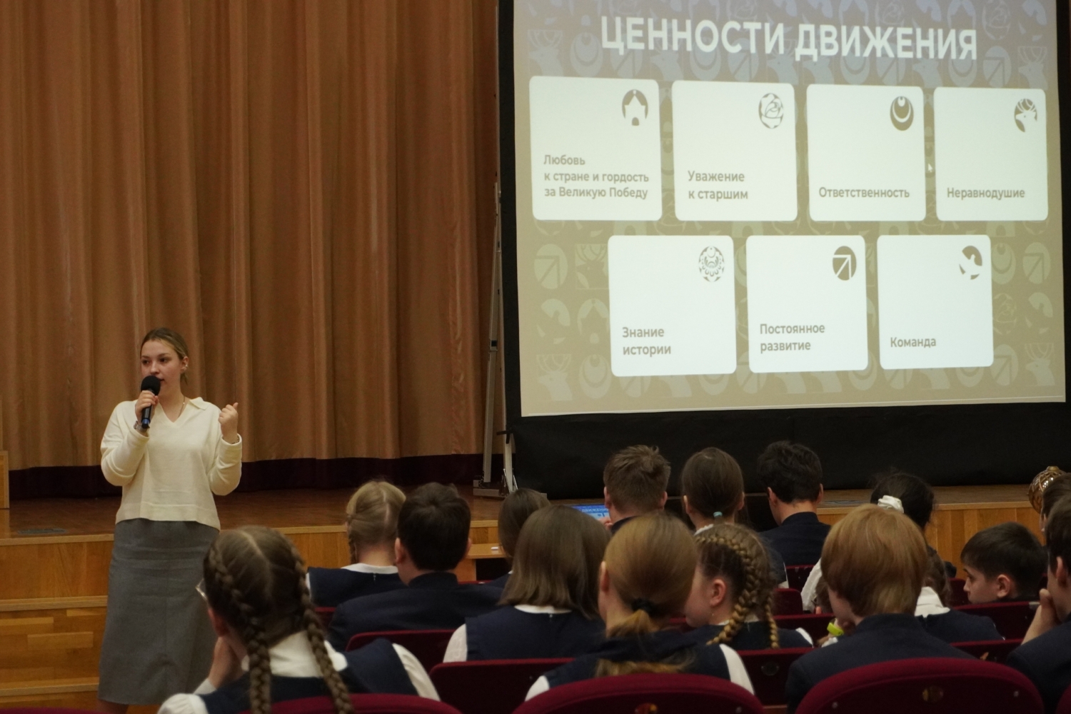 Учащимся также рассказали о ценностях движения: любви к своей стране и гордости за Великую Победу.
